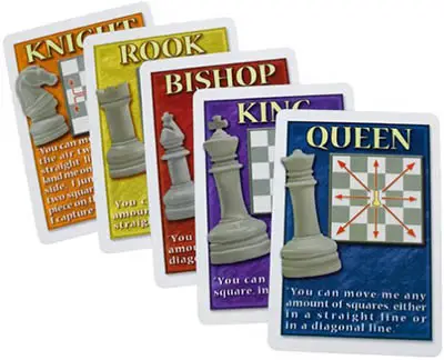 . A player is said to have the move when his opponents move has been completed. The game of chess is played on an 8x8 checkered board where the rows are marked from 1-8 and referred to as ranks and the columns marked from A to H referred to as files. Cards represent typical chess pieces and the board is defined by the rows of cards originally laid out.